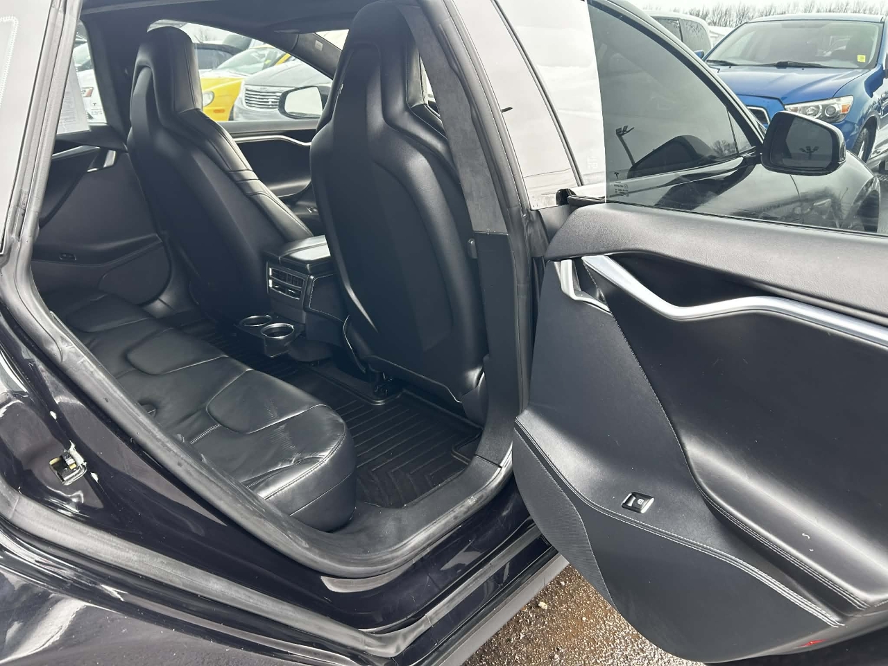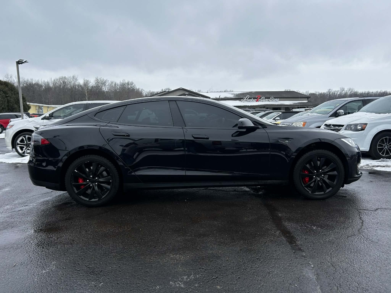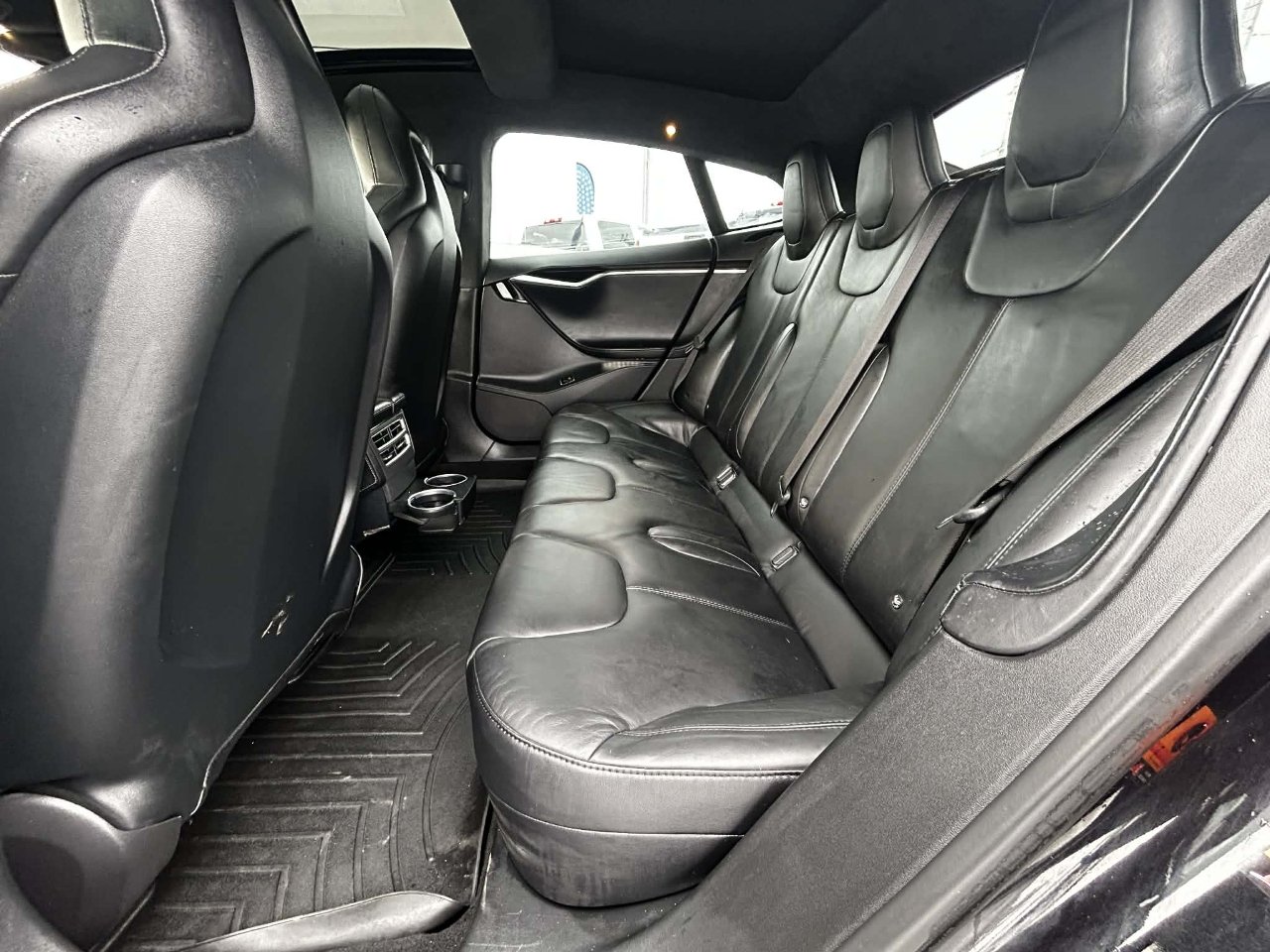 Introducing the sleek and stylish 2015 Black Tesla Model S! This electric beauty is not just a car, it's an experience. With its eye-catching exterior and luxurious interior, you'll be turning heads wherever you go. The smooth and quiet ride will make you feel like you're gliding on air, while the responsive handling will make every drive a thrill.