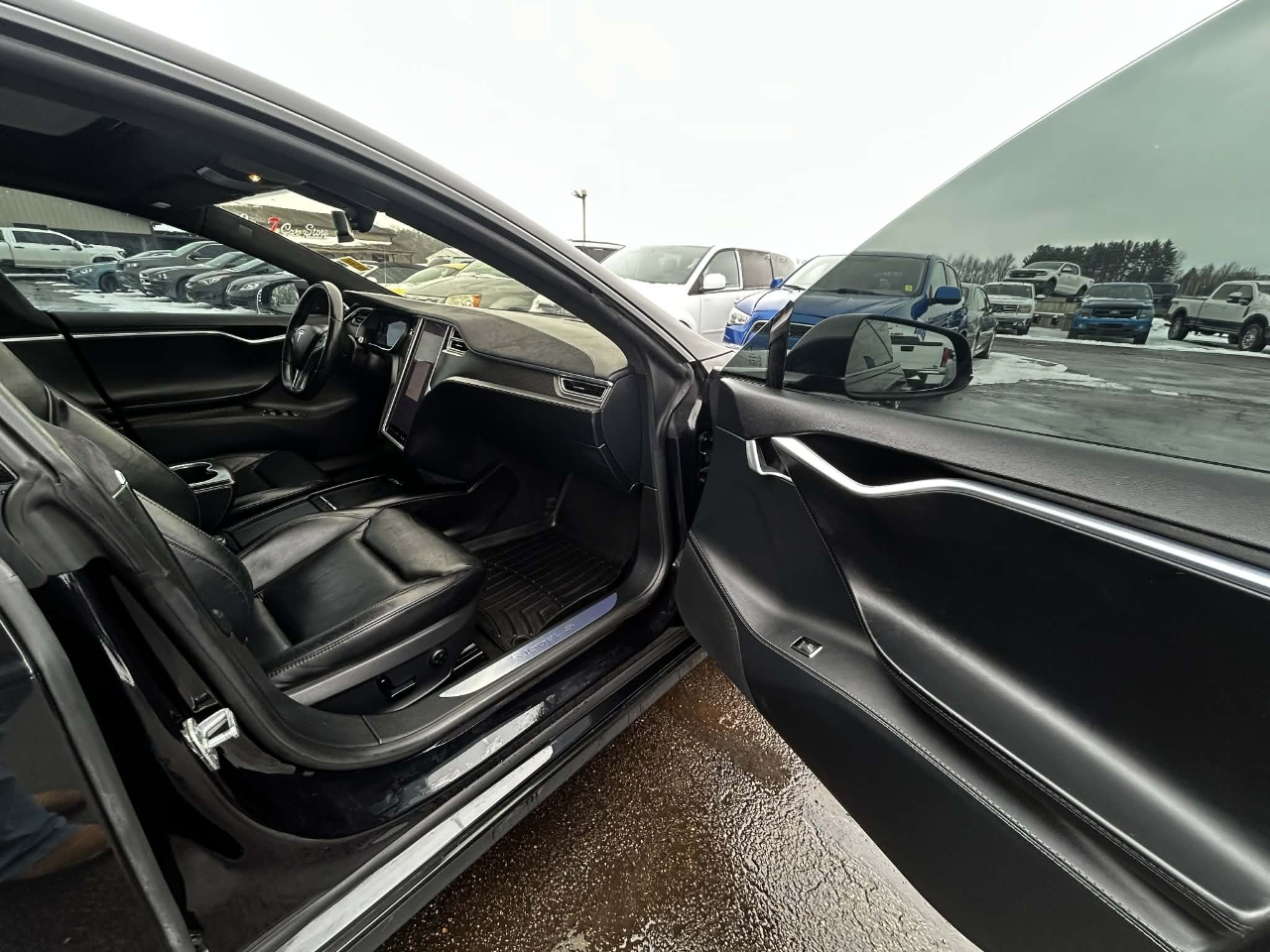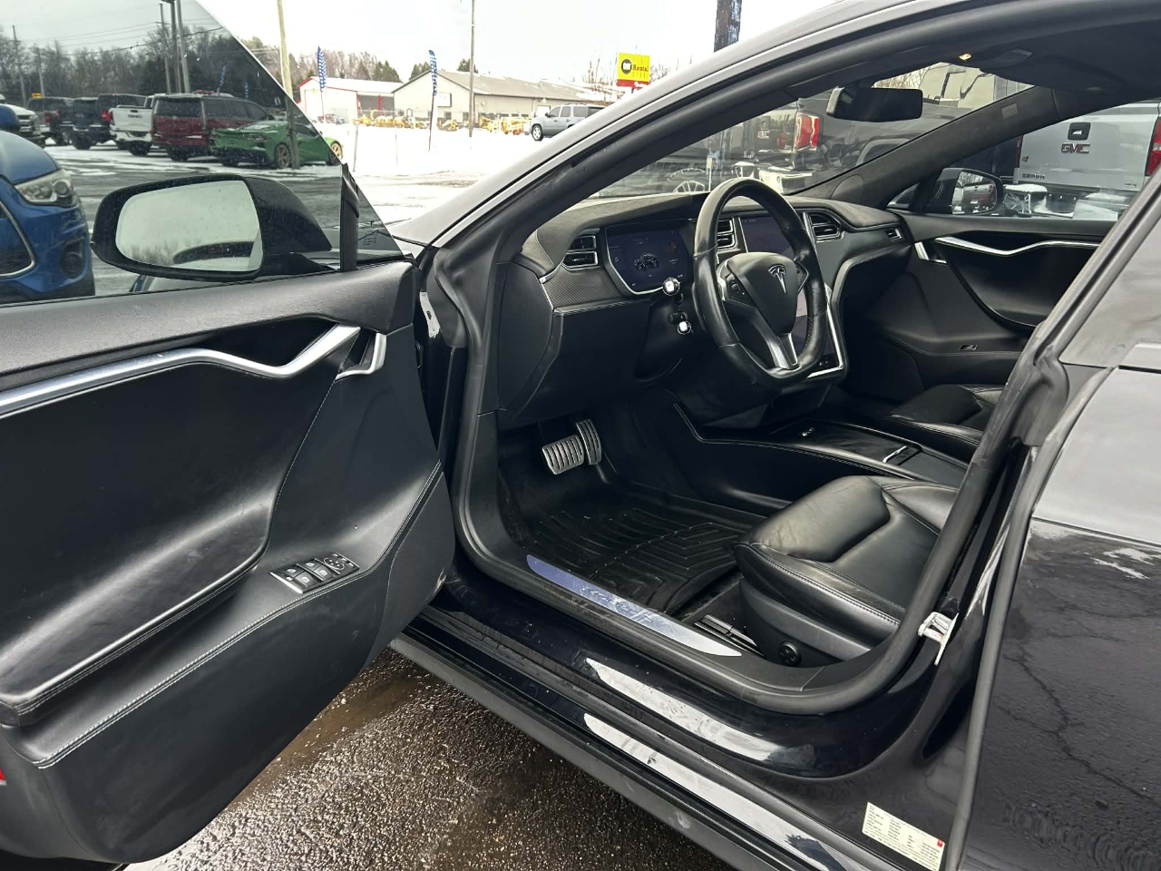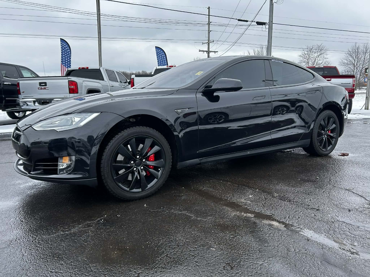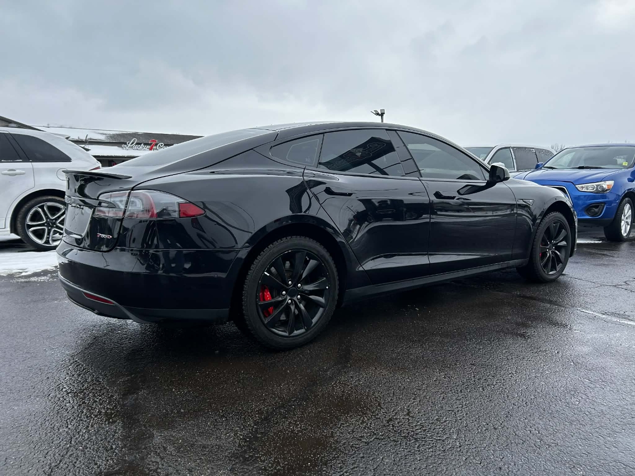 Introducing the sleek and stylish 2015 Black Tesla Model S! This electric beauty is not just a car, it's an experience. With its eye-catching exterior and luxurious interior, you'll be turning heads wherever you go. The smooth and quiet ride will make you feel like you're gliding on air, while the responsive handling will make every drive a thrill.