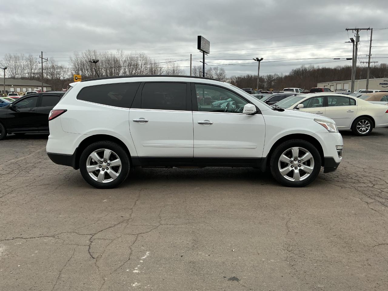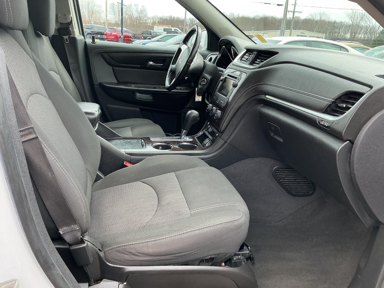 Hop in and buckle up for adventure with this sleek White 2017 Chevrolet Traverse! This versatile beauty is not just a car - it's a lifestyle. With its spacious interior, you'll feel like you're driving a cloud on wheels as you cruise down the highway. Need to transport your family, friends, or furry companions? This car has got you covered with its ample seating and cargo space. Making a quick grocery run or embarking on a road trip? The reliable performance and smooth handling of this Traverse will make every journey a pleasure.